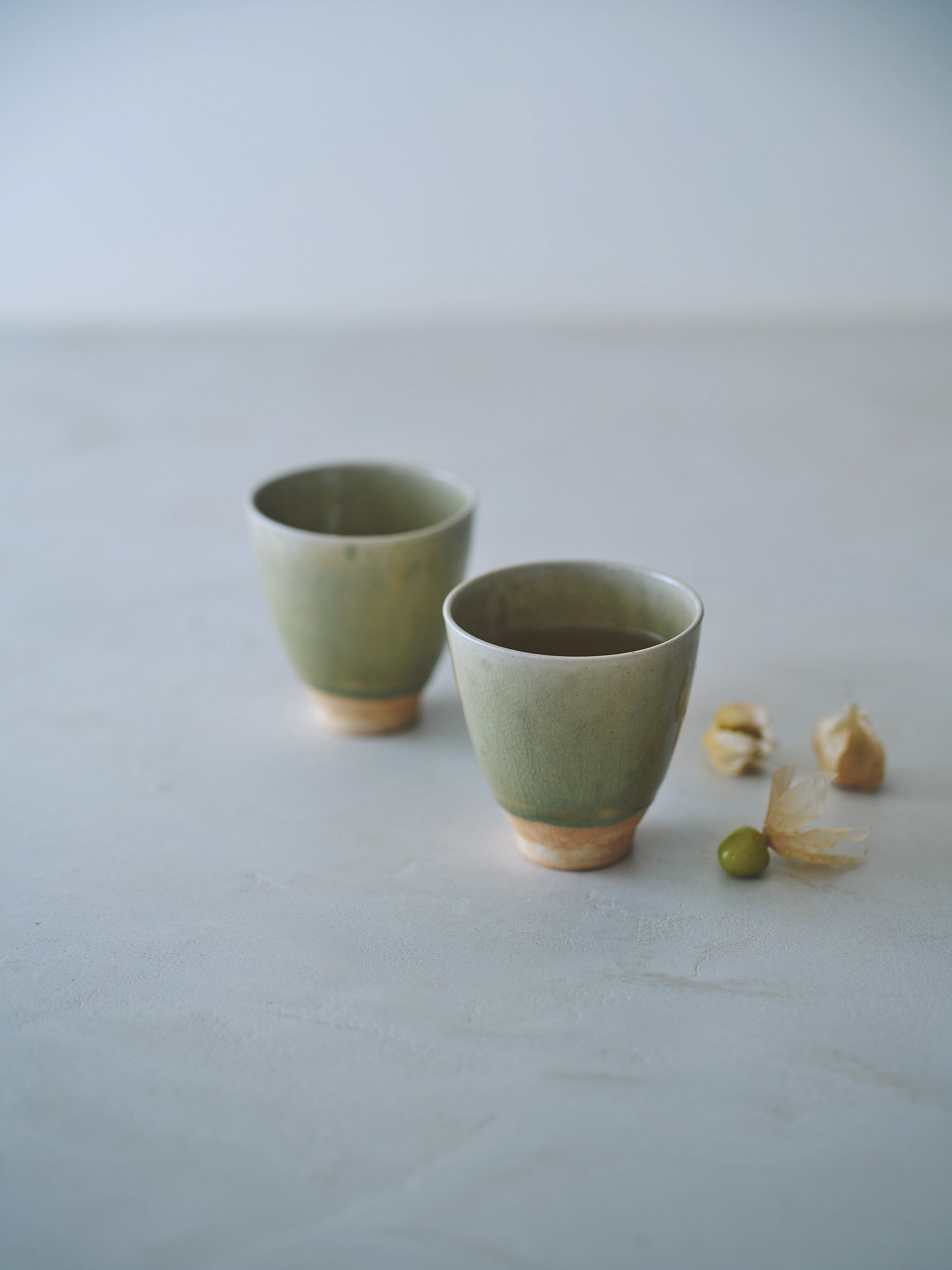 美しい釉薬の流れと、小ぶりながらも緋色に発色する高台が調和し、素朴で温かみのあるデザインが特徴の『TOU』の湯呑み。 頻繁に使うものだからこそ、飽きのこないシンプルな美しさと使い勝手の良さを追求しました。