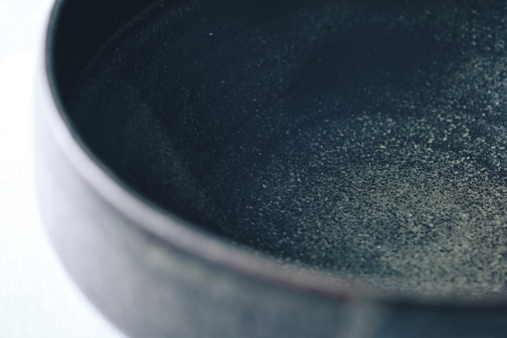 赤土を冷却還元焼成することで生まれる黒灰釉は、深遠な黒の中に、どこか温かみを感じさせる独特の表情が魅力です。マットな質感と、冷却によって生まれる予期せぬ色の濃淡や変化が、単調ではない奥行きのある景色を作り出します。土の持つ素朴な風合いと、抑制の効いた黒色が調和し、モダンでありながらも安らぎを感じさせる、特別な存在感を放ちます。