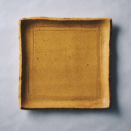 温かみのある黄色が、食材の色味を引き立てる伊良保(いらぼ)の正角皿です。約19cmの程よいサイズは、メインディッシュを風格たっぷりに盛り付けられます。伝統工芸士が丁寧に作り上げた、土の豊かな表情と、手仕事ならではの素朴な風合いが魅力。食卓にぬくもりと、特別な存在感を添えてくれるでしょう。