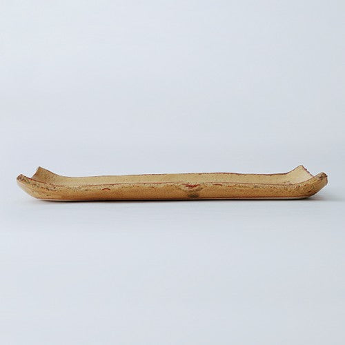 温かみのある黄色が、食材の色味を引き立てる伊良保(いらぼ)の長角皿です。伝統工芸士が丁寧に作り上げた、土の豊かな表情と、手仕事ならではの素朴な風合いが魅力。揚げ物や焼き物を上品に盛り付ければ、より一層美味しそうに引き立ちます。食卓にぬくもりと、特別な存在感を添えてくれるでしょう。