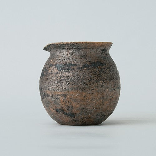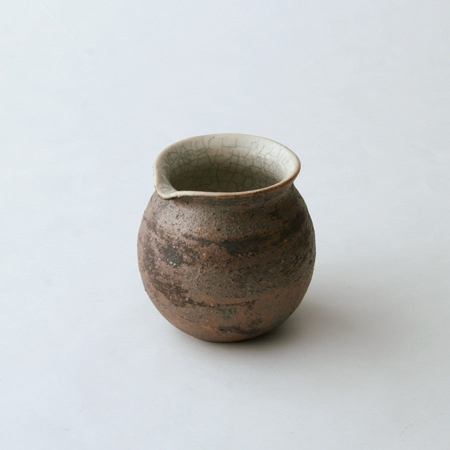 土の温もりと、窯変による自然な景色が魅力的な泥ビードロの蕎麦徳利です。素朴な土肌に、溶け出したビードロ釉が独特の表情を作り出し、一つとして同じものはありません。内側の繊細な貫入が、蕎麦つゆの味わいを深めます。手仕事ならではの温かみを感じさせる、趣のある蕎麦猪口と合わせて、特別な蕎麦のひとときをお楽しみください。