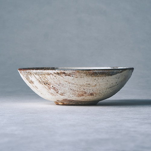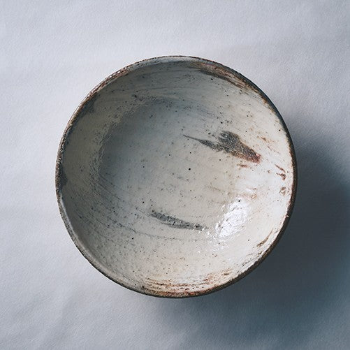 大胆な刷毛目が温かみを添える鉢です。深すぎない形状は、シチューや煮物を盛り付けるのはもちろん、浅めのミニ丼としても使いやすいサイズです。刷毛目の勢いが、お料理に動きを与え、食卓のアクセントになります。
