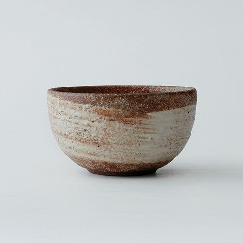 大胆な刷毛目が目を引く、白荒刷毛目の鉢です。ミニ丼としてはもちろん、和え物や、温かいスープ、碗物など、様々な用途に使えるのが魅力です。白と茶色のコントラストが、素朴ながらも味わい深い表情を見せてくれます。手にしっくりと馴染むサイズ感で、普段の食卓に温かみを添えてくれるでしょう。