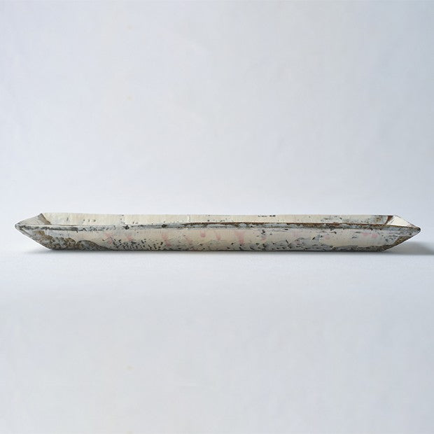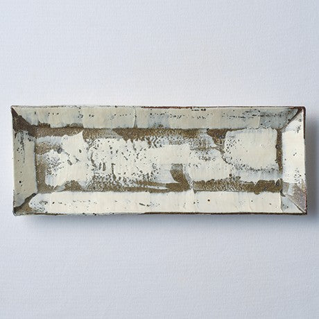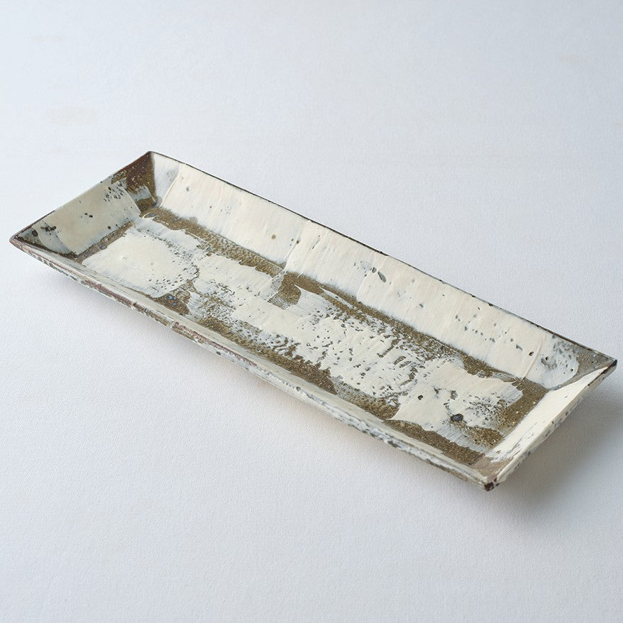力強い刷毛目が印象的な、荒戸白刷毛目の長角皿Lサイズです。大皿として使えるほどの堂々としたサイズは、数種のお料理を盛り付けるのにも最適です。荒々しい土の質感と、大胆な白い刷毛のコントラストが、食卓にダイナミックな表情を与えます。素材の力強さを活かした、存在感のある一皿です。