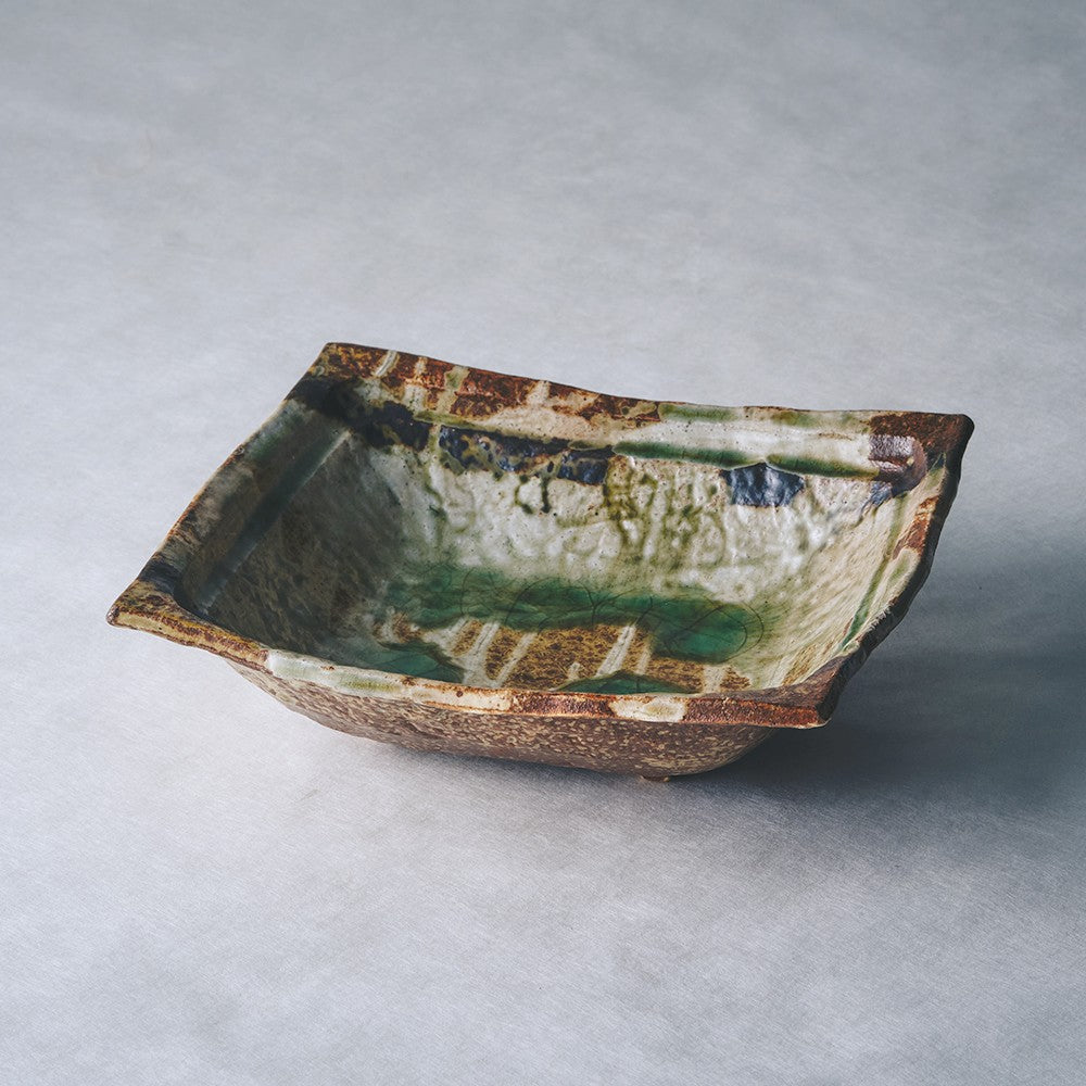 Meister鉄緑灰 角鉢(大)