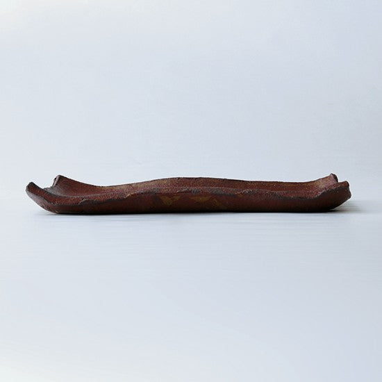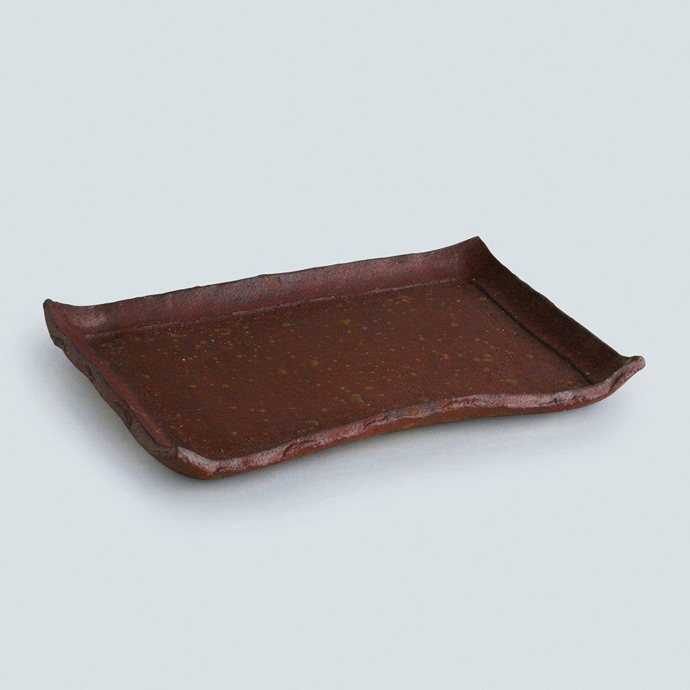 深みのある鉄赤色が、食卓に温かみと落ち着きをもたらす長角皿です。盛り付けやすく、使いやすいサイズです。揚げ物や焼き魚などを、より一層味わい深く引き立てます。伝統工芸士が丁寧に作り上げた、土の質感と手仕事の温もりが感じられる一品。いつものお料理を特別なものに変えてくれる、こだわりの器です。