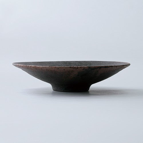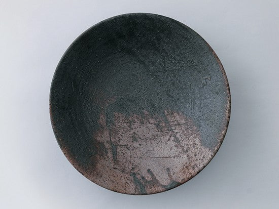 深みのある黒を基調に、銀や灰色のニュアンスが溶け合う高台皿です。高台があることで、盛り付けたメインディッシュに風格が漂い、落ち着いた色合いが食材の美しさを際立たせます。程よい深さは、サラダを盛り付けてもシックな印象に。食卓に、洗練された大人の雰囲気を演出してくれるでしょう。