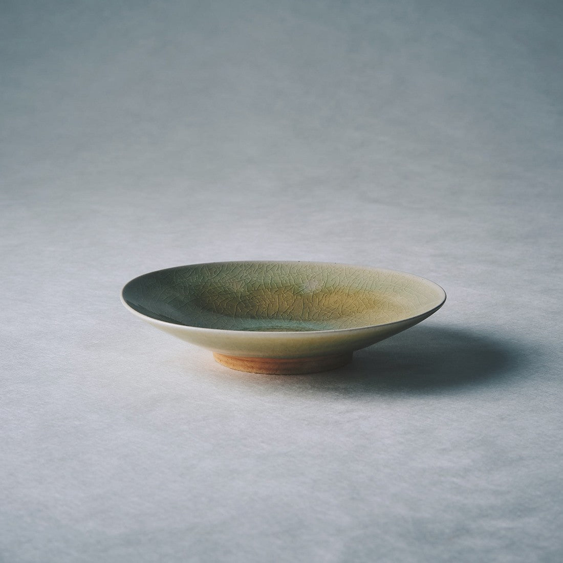 日本の伝統的な浅鉢の形状を尊重しつつ、現代的でシャープなデザインを融合した『TOU』 』の浅鉢。シンプルながらも存在感のある魅力をもっています。無駄をそぎ落とした洗練されたフォルムに、釉薬の窯変した流れが映え、使う人の心を惹きつけます。少し汁気のあるものにも対応でき、汎用性が高いのも特徴です。また、一点一点手仕事で丁寧に作られた温もりと、時代を超えて愛される普遍的な美しさは、一皿でも十分に存在感があり印象的な景色を演出します。深すぎず浅すぎない絶妙な高さで、どんな料理も立体的に引き立てます。5寸は取り分け小皿としても便利なサイズです。