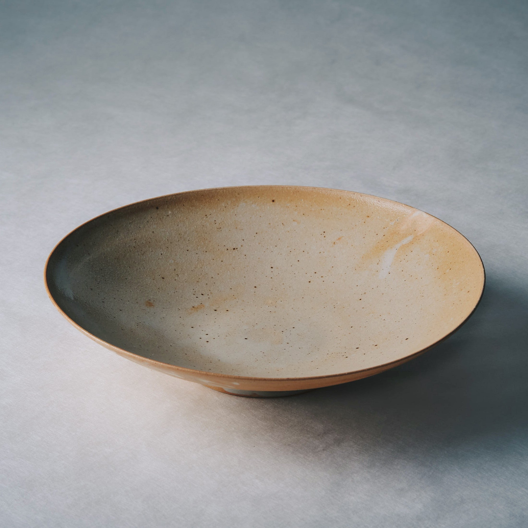日本の伝統的な浅鉢の形状を尊重しつつ、現代的でシャープなデザインを融合した『TOU』 』の浅鉢。シンプルながらも存在感のある魅力をもっています。無駄をそぎ落とした洗練されたフォルムに、釉薬の窯変した流れが映え、使う人の心を惹きつけます。少し汁気のあるものにも対応でき、汎用性が高いのも特徴です。また、一点一点手仕事で丁寧に作られた温もりと、時代を超えて愛される普遍的な美しさは、一皿でも十分に存在感があり印象的な景色を演出します。深すぎず浅すぎない絶妙な高さで、どんな料理も立体的に引き立てます。8寸は、テーブルの中央に置く主役の大皿として活躍します。